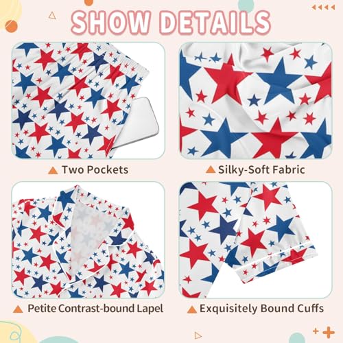 More information about Red Blue Cartoon Star Pattern Summer Satin Pajama Set, Cute Button-Down Sleepwear Pj Set for Sleep Wears