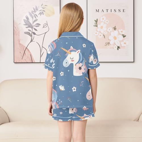 senya Cute Unicorn Head A Satin Summer Pajama Sets Silk Short Sleeve Button Down Sleepwear 6