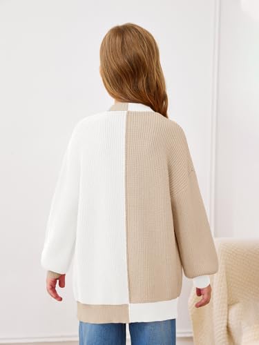 Haloumoning Girls Oversized Batwing Sleeve Cardigan Sweaters Kids Fashion Open Front Color Block Outerwear 5