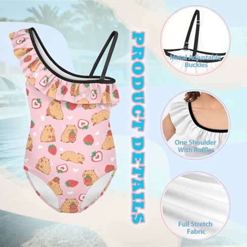 Girls One Piece Swimsuit Ruffle One Shoulder Bathing Suits Beach Swimwear for Kids Beach or Pool Party 5
