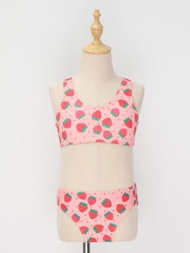 Kids Girls Strawberry Swim Cover Ups Drawstring Kimono Bikini Top Brief Bathing Suits 6