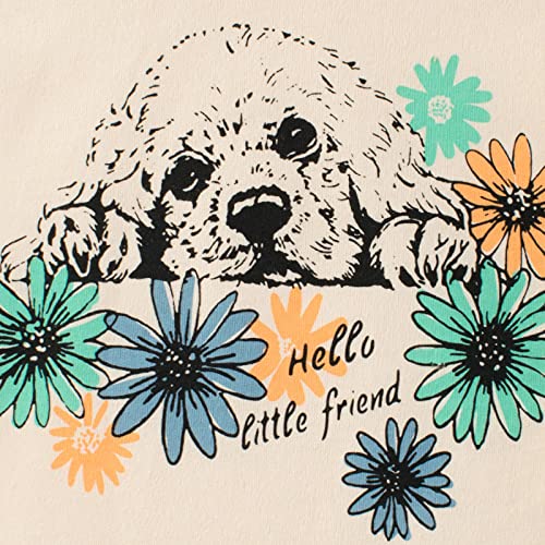 Kids Inner Wear Toddler Kids Summer Clothes Short Sleeve T Shirt Beige Puppy Cartoon Pattern Girl Flower 3