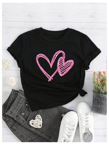 SweatyRocks Girl's 3 Pack T Shirts Sparkly Heart Print Tees Short Sleeve Crewneck Summer Tops 3