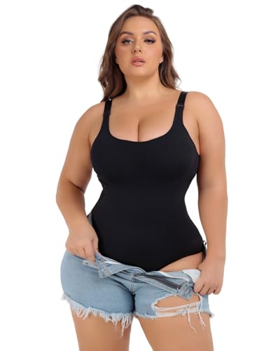 Plus Size Bodysuit Tummy Control Sleeveless Tank Top Built in Bust Support Black Shapewear for Curvy Women 5