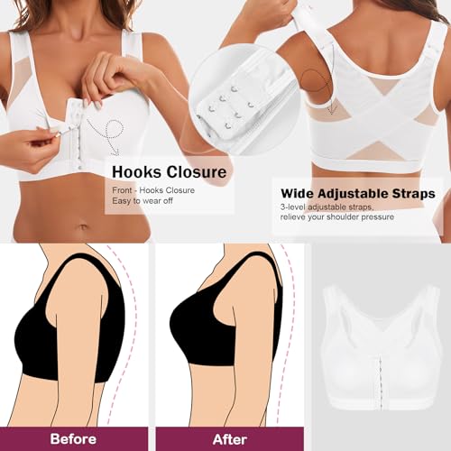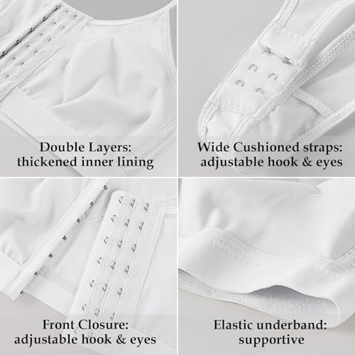 • FRONT CLOSURE BRA:Convenient front closure style and thoughtful design, you can put this posture bra on and take off easily.More sturdy and convenient hook,let you wear this front closure bra handily,save your time and free your hand.Great for post-surgical wear or big busted women