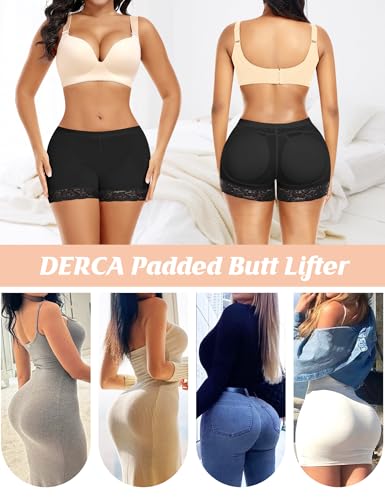 HOT ! DERCA Padded Underwear for Women Butt Lifter Seamless Booty Pads Butt Enhancer Panties Lace Shapewear Boyshorts
