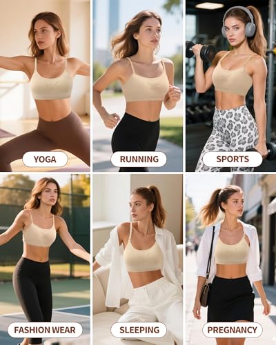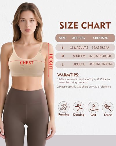 • 🩰🩰🩰FASHION DESIGN - Beige seamless bras, no sponge, with 2 pack replace clear strap design allows for unrestricted movement, making it perfect for dance or gymnastics class. you can choose clear or no shoulder straps when wearing for class or show.