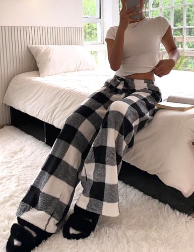 • Features: This fuzzy pajama pants for women feature elastic waist, plush pants, fluffy fleece, leopard and plaid print, wide leg, casual loose style, sleep bottoms.