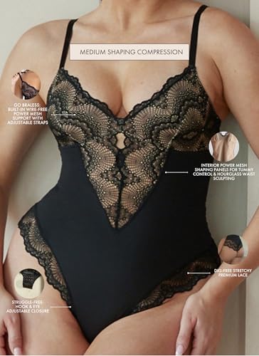 • MEDIUM TO FIRM SHAPING: Experience a medium to firm shaping level with our Sculpting Lace Shapewear Bodysuit, designed to provide 360° shaping and hourglass enhancement.
