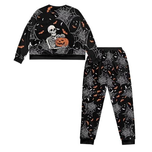 HOT ! Women Halloween Pajamas Set Round Neck Pj 2 Piece Lounge Sets Pajama with Pockets Long Sleeve Outfits Soft Sleepwear