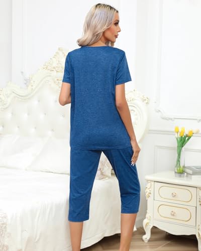 • Exclusive design: Unique sexy v-neck Short sleeve top, drawstring elastic waist lounge capri pants with 2 side pockets, Cute & Comfy & cozy lounge sets