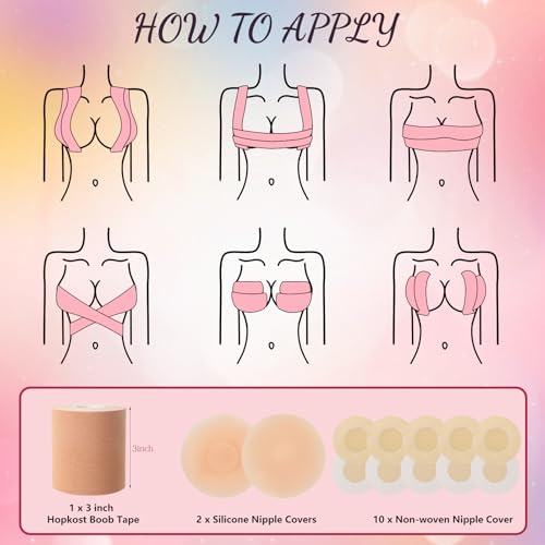 Boob Tape Boobytape For Breast Lift with 1Boobtape 2pcs Nipple Covers Silicone 10pcs Disposable Nipple Pasties 6