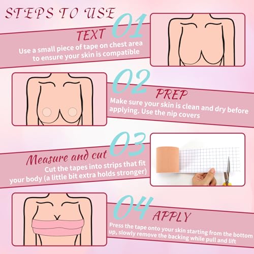 Boob Tape Boobytape For Breast Lift with 1Boobtape 2pcs Nipple Covers Silicone 10pcs Disposable Nipple Pasties 4