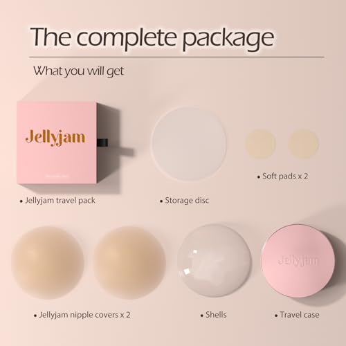 HOT ! Jellyjam Nipple Petals Cover- Sticky Silicone Nipple Pasties for Girl, Women with Soft Pad, Storage Disc and Travel Case/Pack