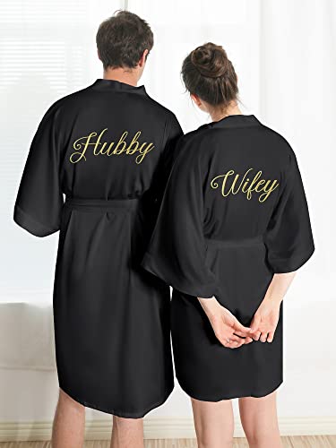 AW BRIDAL 2Pcs Mr Mrs Robes Silk Matching Robes for Couples Bride and Groom Wedding Robe Anniversary Engagement Gifts 6