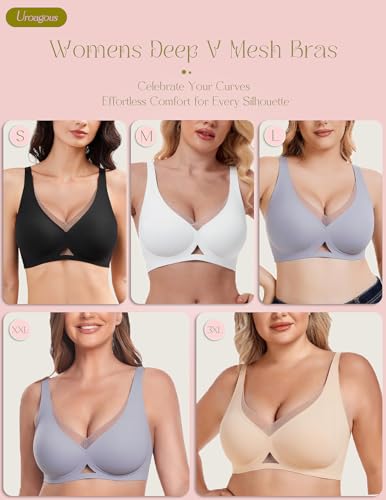 • Chic Deep V Mesh Bras for Women - Uroagous Wireless bra features a cute deep V style design with a charming mesh neckline, which gathers and lifts your breasts, setting off the breast line to make your breasts more round and lovely. It showcases the attractive collarbones and cleavage under T-shirts and other clothing. The seamless deep V bra especially showcases the beautiful neckline and is ideal for wearing under low-cut tops and dresses, thus making your outfit charming and elegant