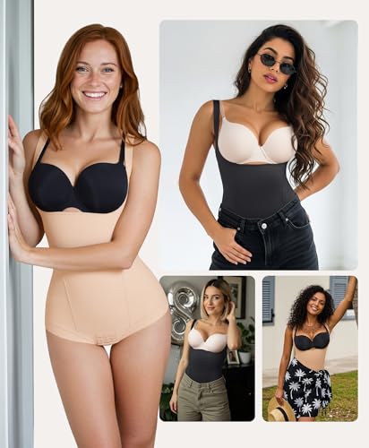 • EASY BATHROOM ACCESS: This faja body shaper is designed with women's comfort in mind, the crotch area in our bodysuits for women features a three-row hook closure for adjustable fit and easy bathroom use — no need to take it all off.