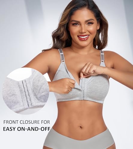 DotVol Women's Front Closure Cotton Wireless Unlined Comfort Everyday Bra 3