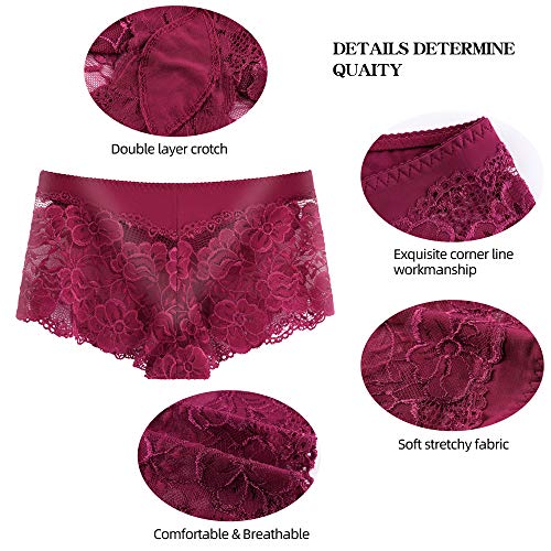 YaoKing Women's Underwear Regular & Plus Size Panties Lace Boyshort Hipster Cheeky Panty- 6 Pack 4