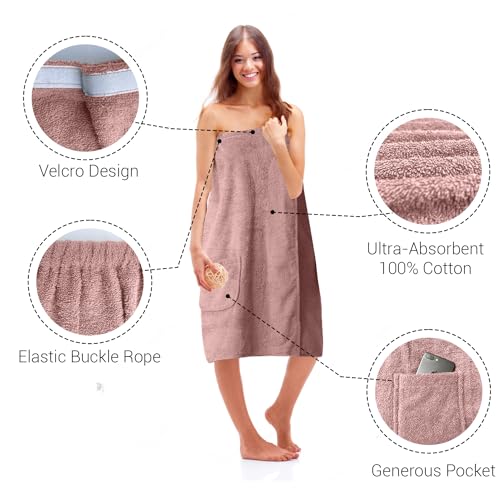 • βœ…π’π”ππ‘π„πŒπ„ π‚πŽπŒπ…πŽπ‘π“: Our Unisex towel dress is made of 100% Cotton which is renowned for its high absorbency, durability, and softness. This shower towel is comfortable to use in a bath, home, spa, hotel, sauna bath, pool, and Jacuzzi. Not only does the cotton fabric offer supreme comfort, but it also boasts excellent moisture-wicking properties, ensuring you stay dry and cozy after every shower or dip.