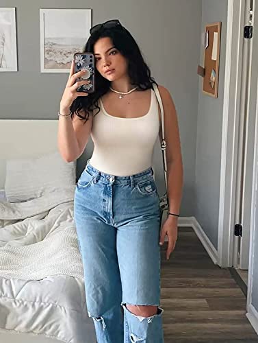 • 【Sexy Ribbed Seamless】:Sexy ribbed square neck tank tops womens bodysuit, flattering , sleeveless, wide set straps simple in design,The skims body suit easy to dress up and dress down.