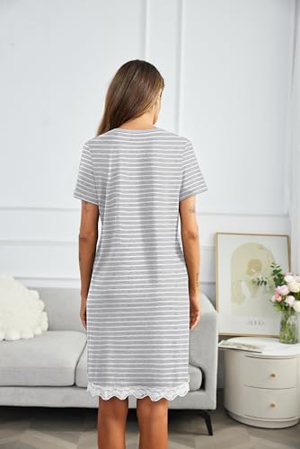 More information about Ekouaer Women Striped Nightgowns Button Down Sleepshirts Short Sleeves Nightshirts