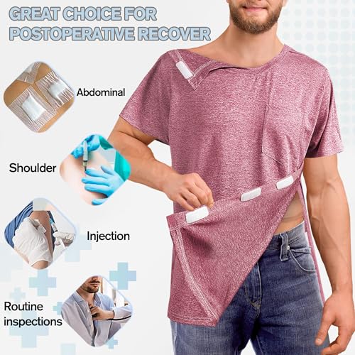 • 【Innovative Design】Shoulder Surgery Shirts for men features secure, lightweight hook and loop fasteners on both sides and shoulders for easy dressing and access. Say goodbye to the patient look and bulky hospital gowns, as well as uncomfortable baggy shirts or shirts with visible buttons and snaps.