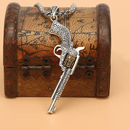925 Sterling Silver Vintage Gun Pendant Retro Punk Gothic Rock Hip Hop Revolver Gun Pendant for Men Women 1