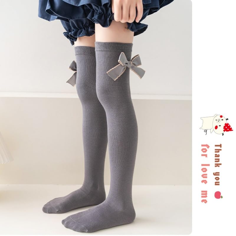• This kind of thigh-high socks are very versatile. It can be paired with dresses. For example, when paired with a fluffy princess dress, it makes the girl's overall look even sweeter and cuter, just like a little princess walking out of a fairy tale. It can also be paired with shorts or skirts. While showing the girl's leg lines, it adds a sense of fashion and layering.