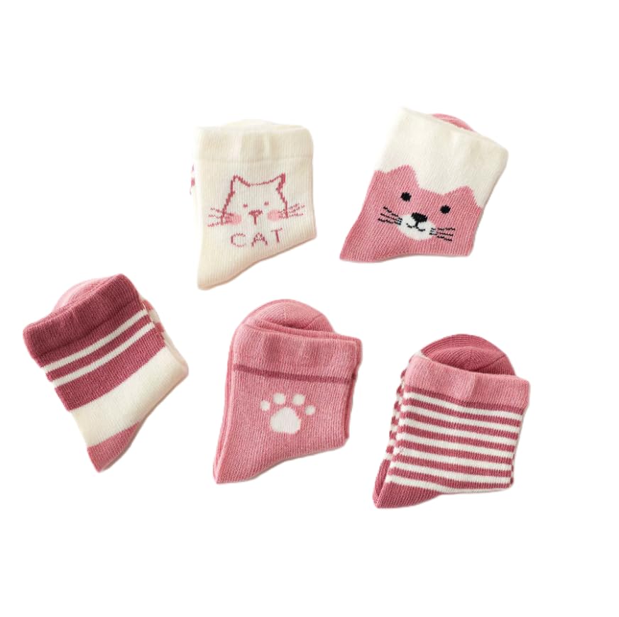 Nemo&Luna Little Cat 5 Pairs 3-5 Years、6-8Years BLoose-top aby Girls Socks 4