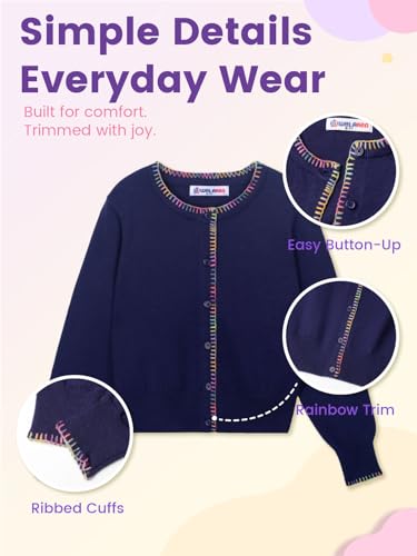 Girls Knit Cardigan – Soft Lightweight Sweater with Rainbow Trim for School or Layering 5