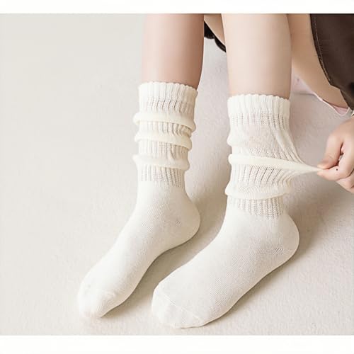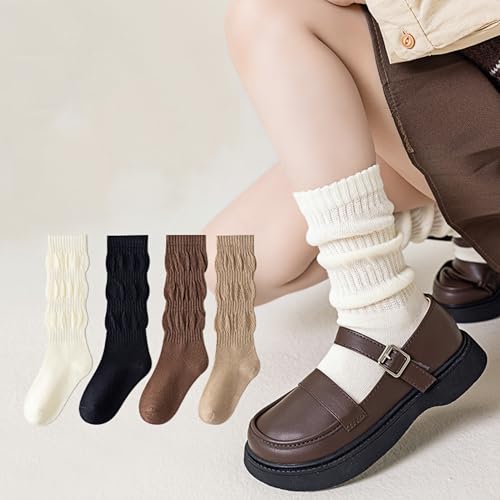 HOT ! Kids Slouchy Ribbed Cotton Socks – Midway Between Crew and Knee High Socks for Girls (Ages 4-12, Pack of 4 Colors)