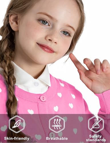 BOBOYOYO Girls Cardigan 100% Cotton Kids Heart Cardigan Sweater Valentines Long Sleeve Toddler Girl Soft Knit Cardigan 5