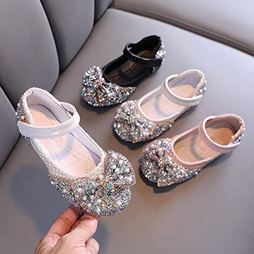 sfdgfhyf Toddler Girls First Walking Foot Warmer Girls' Single Shoes Spring And Autumn Colored Diamond Bow Knot Small 4
