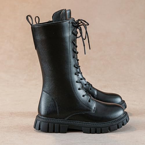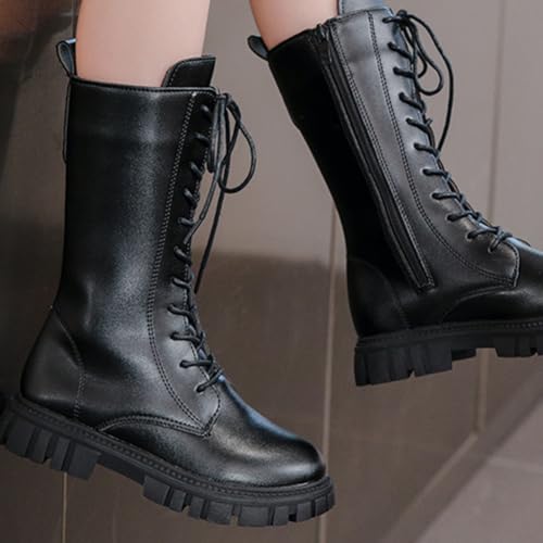 HOT ! Girl's Lace-Up Zipper Combat Waterproof Boots PU Leather Side Zipper Punk Goth Boot for Little Kid/Big Kid Campus Style (Black,1)