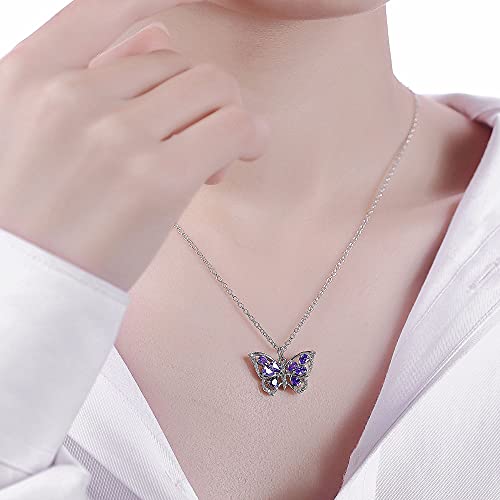• Elegant Butterfly Pendant Necklaces: Crafted in hypoallergenic 925 sterling silver with white gold plating, this non-tarnish purple butterfly necklace features a genuine amethyst crystal February birthstone. Perfect sparking gift for women or girls. Butterfly is also a symbol for new beginnings for teen or grads.