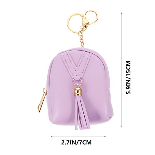 Mini Coin Purse Keychain Mini Wallet Keychain Leather Backpack Coin Pouch Cash Bag Small Change Bags Handbag Pendant for Women Girls Lavender 6