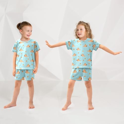 HOT ! Orange Capybara Cyan Pajama Set Short Sleeve Sleepwear Nightwear Set Soft Summer Pajamas