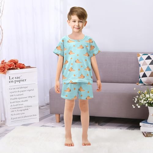 Orange Capybara Cyan Pajama Set Short Sleeve Sleepwear Nightwear Set Soft Summer Pajamas 4