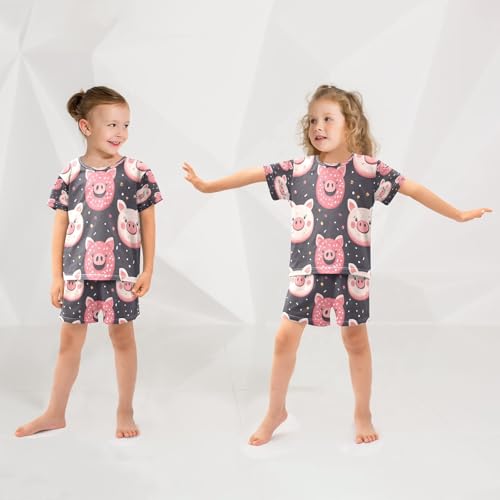 Pajama Sets Short Sleeve Pig Donut Pattern Prints Soft Cotton Summer Sleepwear 2 Piece PJS Size 5-14T 3