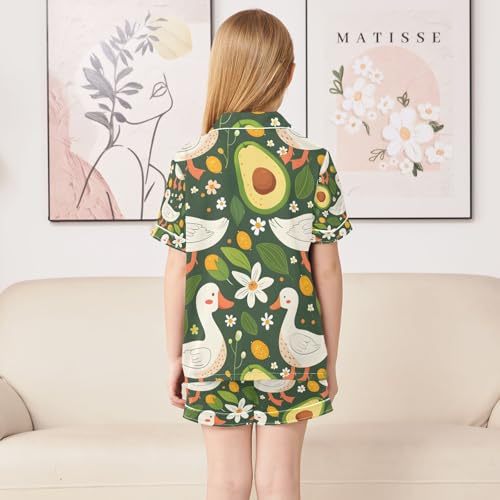 senya Daisy and Avocado Duck Satin Summer Pajama Sets Silk Short Sleeve Button Down Sleepwear 6