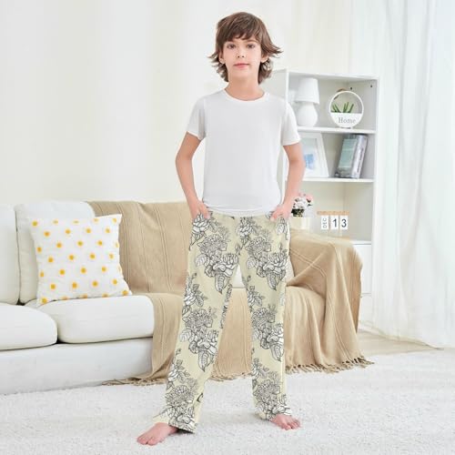 J JOYSAY Blossom Foliage Sketch Beige Pajamas Pants Soft Long Pajama Bottoms Lounge Sleep Pants Size S-XL 1