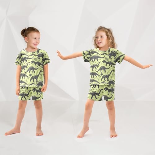 ALAZA Dinosaur Green Pajamas Short Sleeve 2 Piece Sleepwear Top and Bottom Pajama Set Unisex 6
