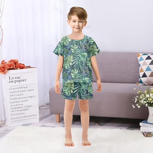 ALAZA Anchor Tropical Leaves Pajama Set Short Sleeve Sleepwear Soft Lounge Nightwear 2