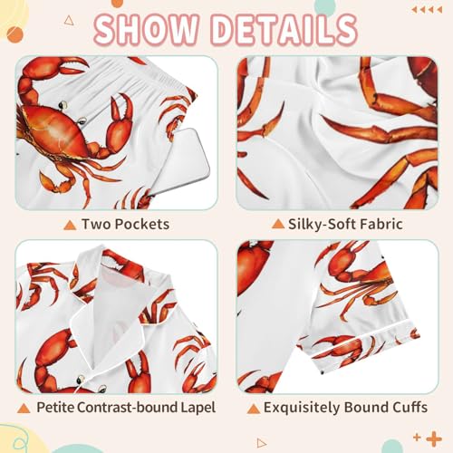 Satin Pajama Sets Short Sleeve Crab Pattern Print Design Button Down Silky Nightwear 2 Piece PJS 5-14Y 7