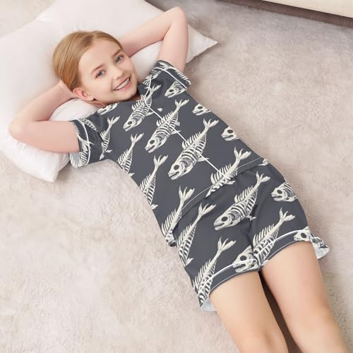 ALAZA Gray Fish Bone Satin Pajamas Set Short Sleeve Button Down Sleepwear Summer Pjs 2 Piece 1