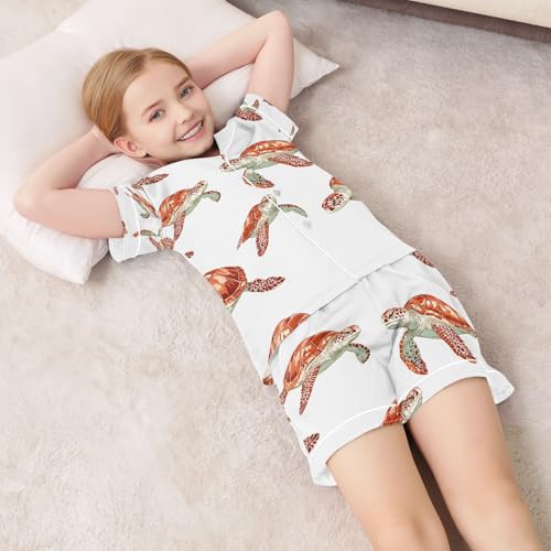 senya Red Cute Turtle White Satin Summer Pajama Sets Silk Short Sleeve Button Down Sleepwear 2