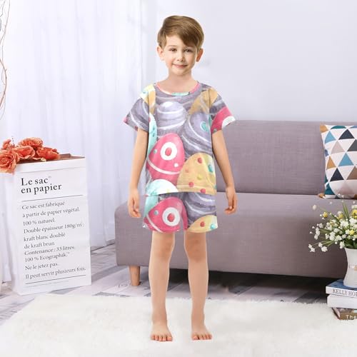 Summer Pajama Set Painted Easter Eggs Pattern, Short Sleeve Sleepwear Nightwear 6