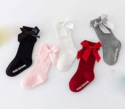 Sywwlov Baby Girls Non Slip Grip Knee High Socks Toddler Tube Bow Ruffled Long Stockings Cotton Socks 5