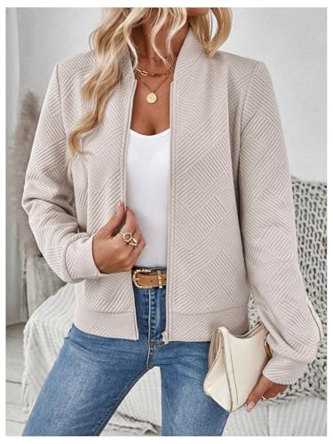Verdusa Women's Zip Up Textured Lightweight Bomber Jacket Casual Long Sleeve Outerwear 1